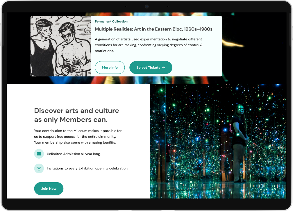 Ordering museum tickets online is clunky, often using ticket plugins that doesn’t match the museum’s brand and confuses the user.