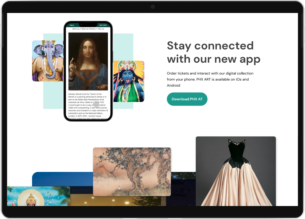 I designed a responsive website for an art museum as part of my Google UX Design Certification course. The Phoenix Art Museum attracts a diverse audience ranging from young adults to middle-aged individuals, including both local residents and tourists.